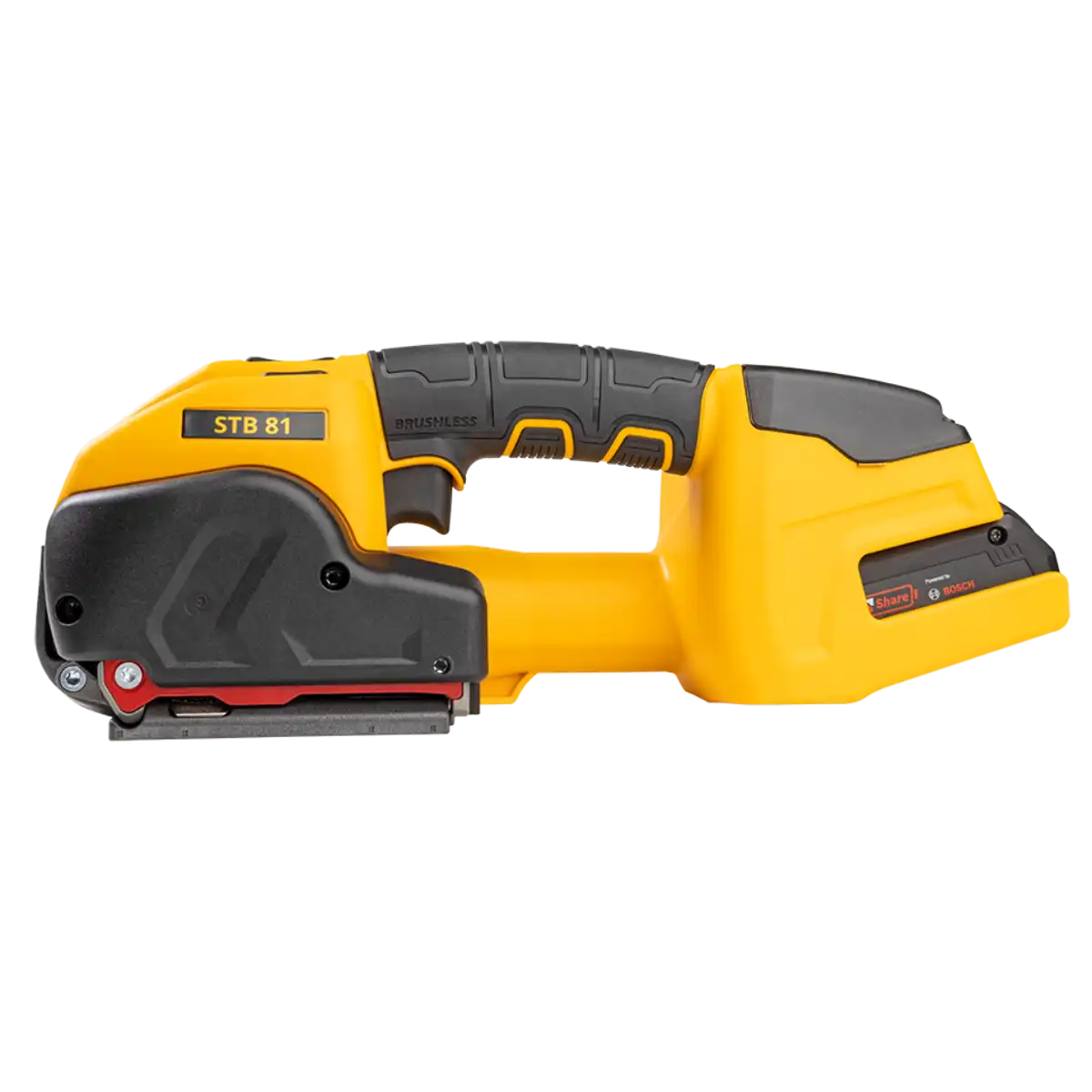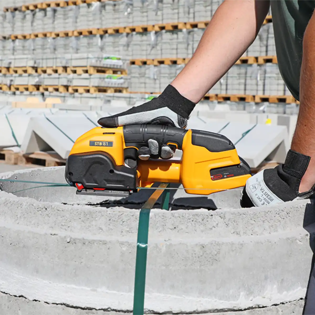De STB 81 is een krachtige, batterij‑gevoede omsnoeringsmachine, ontworpen voor het snel en efficiënt spannen, sealen en snijden van PP- of PET‑band van 9-13 mm breed. Dankzij het lichte en ergonomische ontwerp (slechts 3,8 kg inclusief accu) is hij eenvoudig te hanteren - ook op locatie of in magazijnomgevingen. Met automatische, semi‑automatische of manuele modus biedt de STB 81 flexibiliteit voor verschillende werksituaties. De machine gebruikt friction‑weld sealing voor betrouwbare sluitingen zonder metalen sluitingen, wat omsnoeren sneller, schoner en veiliger maakt.